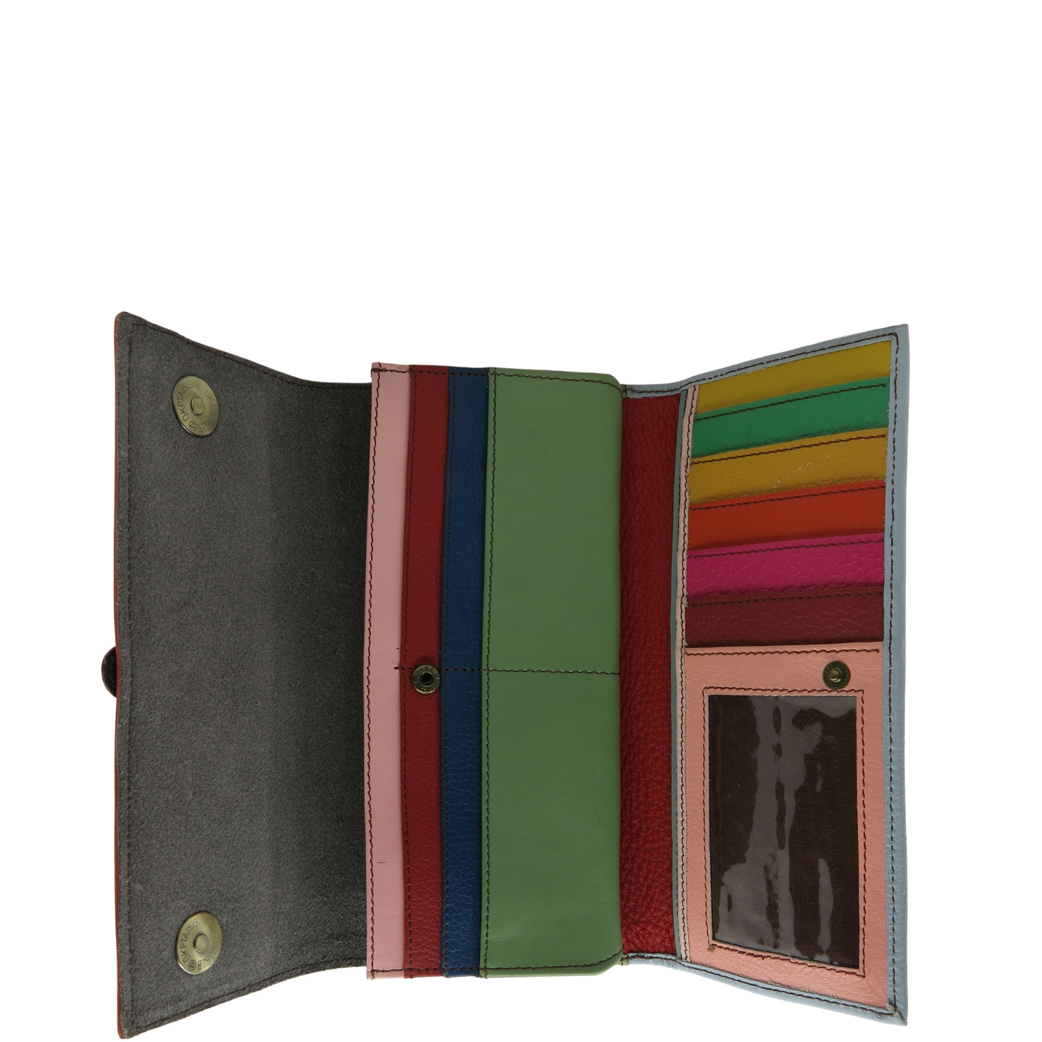 Średniej wielkości portfel wykonany ze skrawków skóry naturalnej. Jego unikalne połączenie kolorystyczne nadaje mu niepowtarzalny charakter, czyniąc go doskonałym dodatkiem. Spełni oczekiwania nawet najbardziej wymagających kobiet.