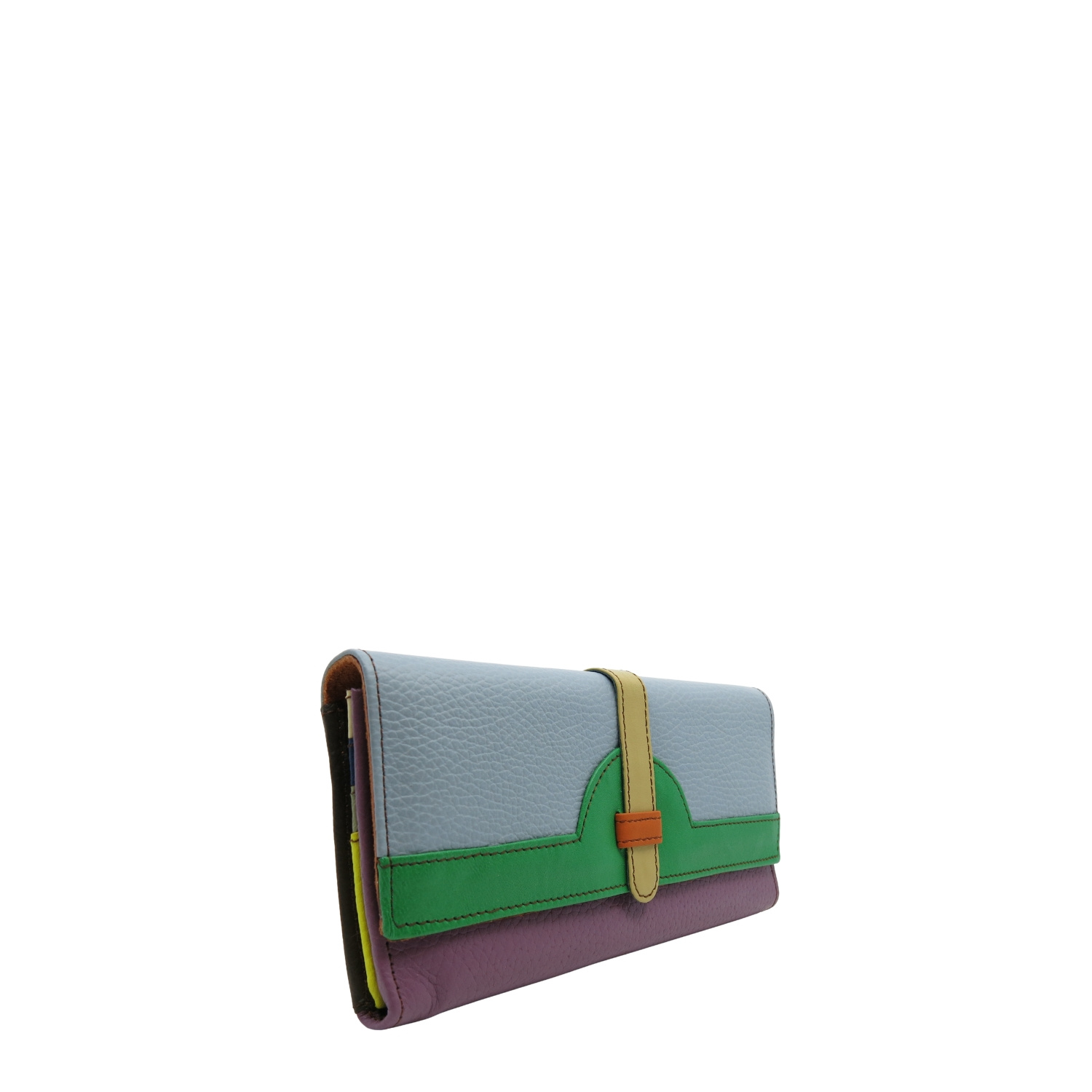 Średniej wielkości portfel wykonany ze skrawków skóry naturalnej. Jego unikalne połączenie kolorystyczne nadaje mu niepowtarzalny charakter, czyniąc go doskonałym dodatkiem. Spełni oczekiwania nawet najbardziej wymagających kobiet.