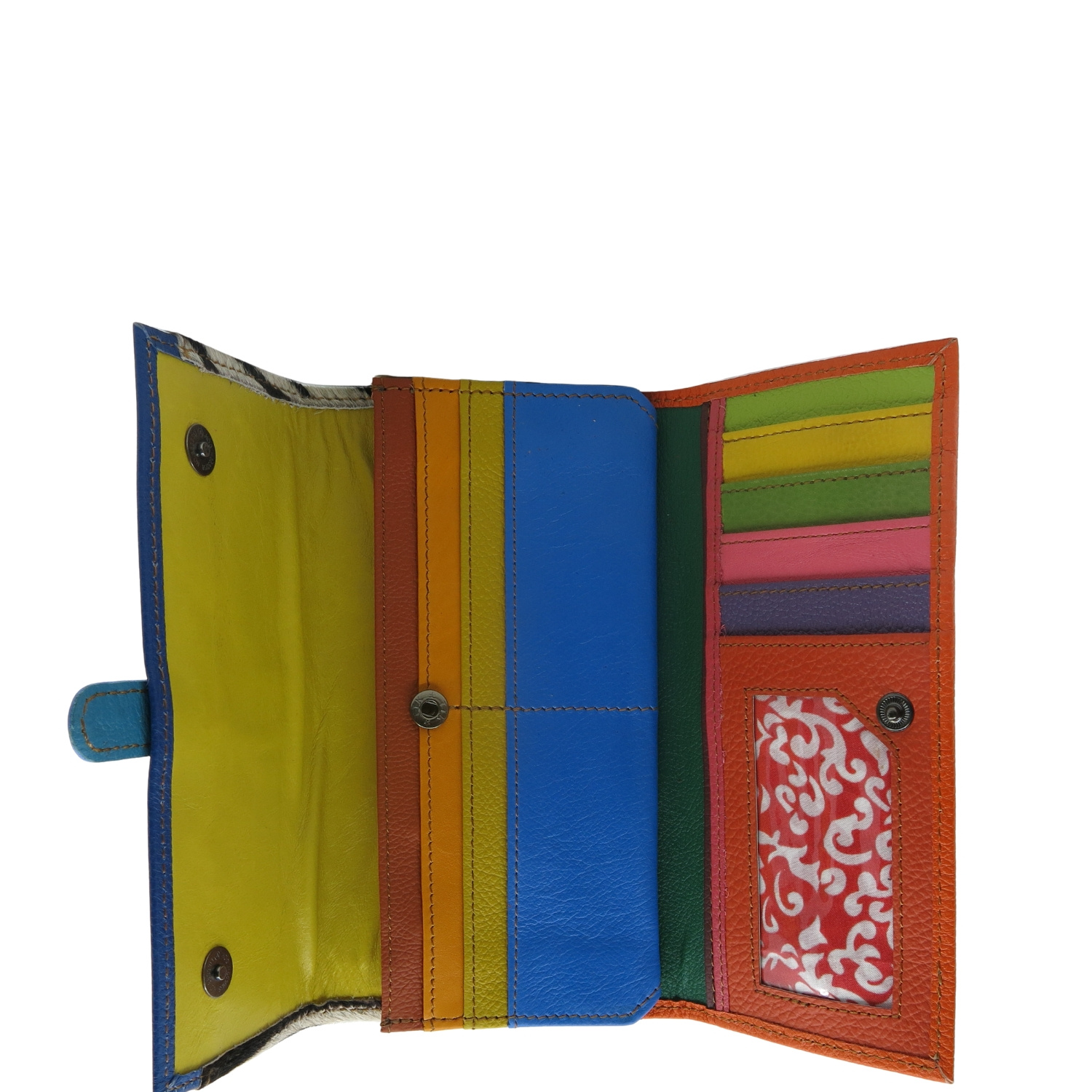 Średniej wielkości portfel wykonany ze skrawków skóry naturalnej. Jego unikalne połączenie kolorystyczne nadaje mu niepowtarzalny charakter, czyniąc go doskonałym dodatkiem. Spełni oczekiwania nawet najbardziej wymagających kobiet.