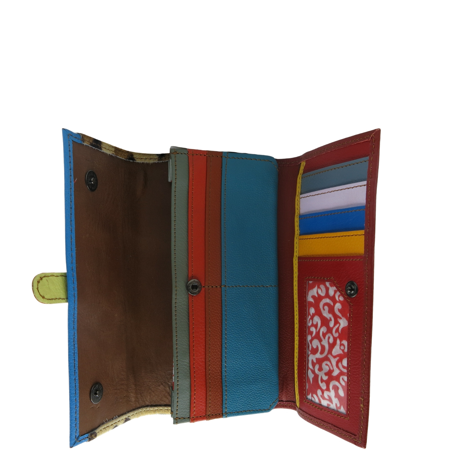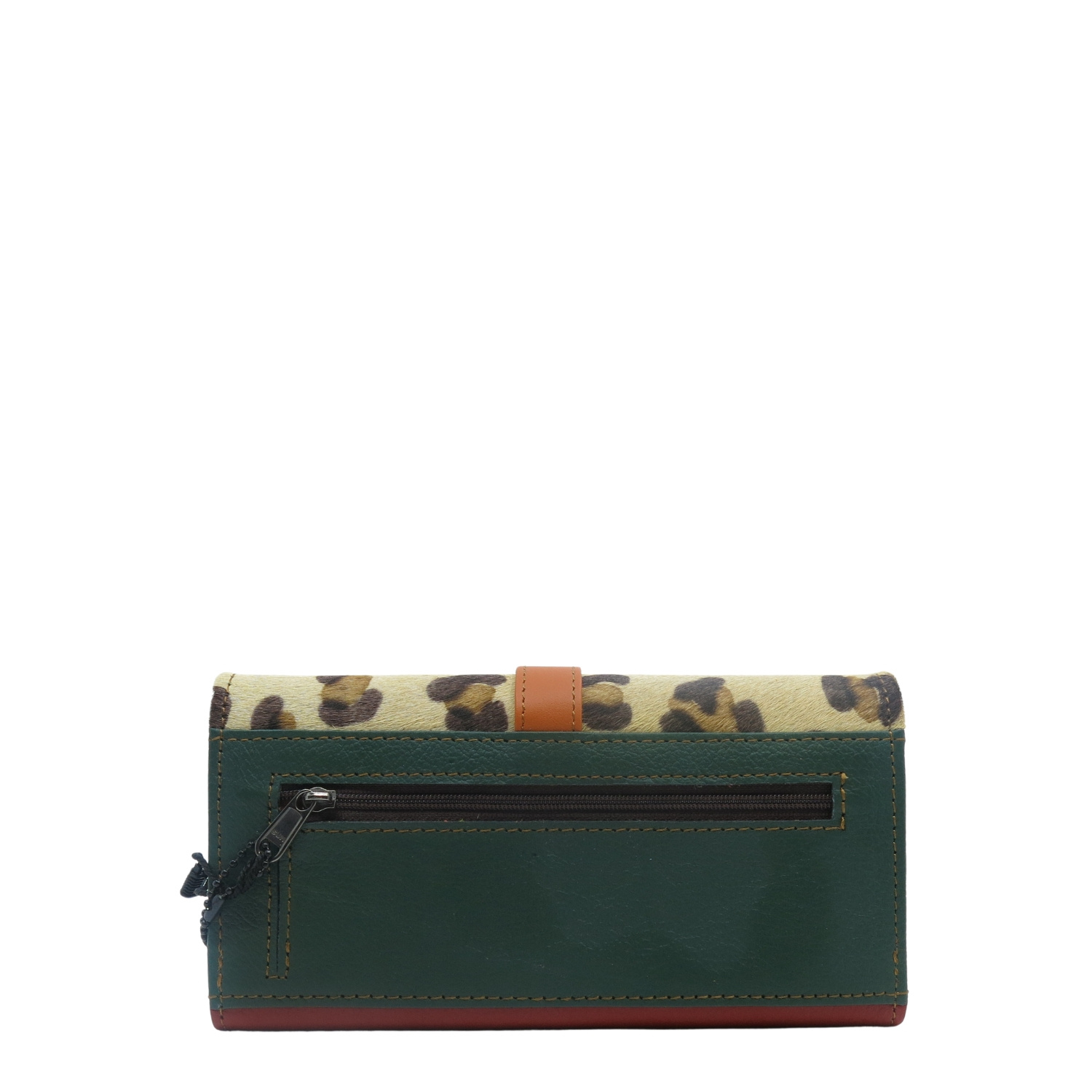 Średniej wielkości portfel wykonany ze skrawków skóry naturalnej. Jego unikalne połączenie kolorystyczne nadaje mu niepowtarzalny charakter, czyniąc go doskonałym dodatkiem. Spełni oczekiwania nawet najbardziej wymagających kobiet.