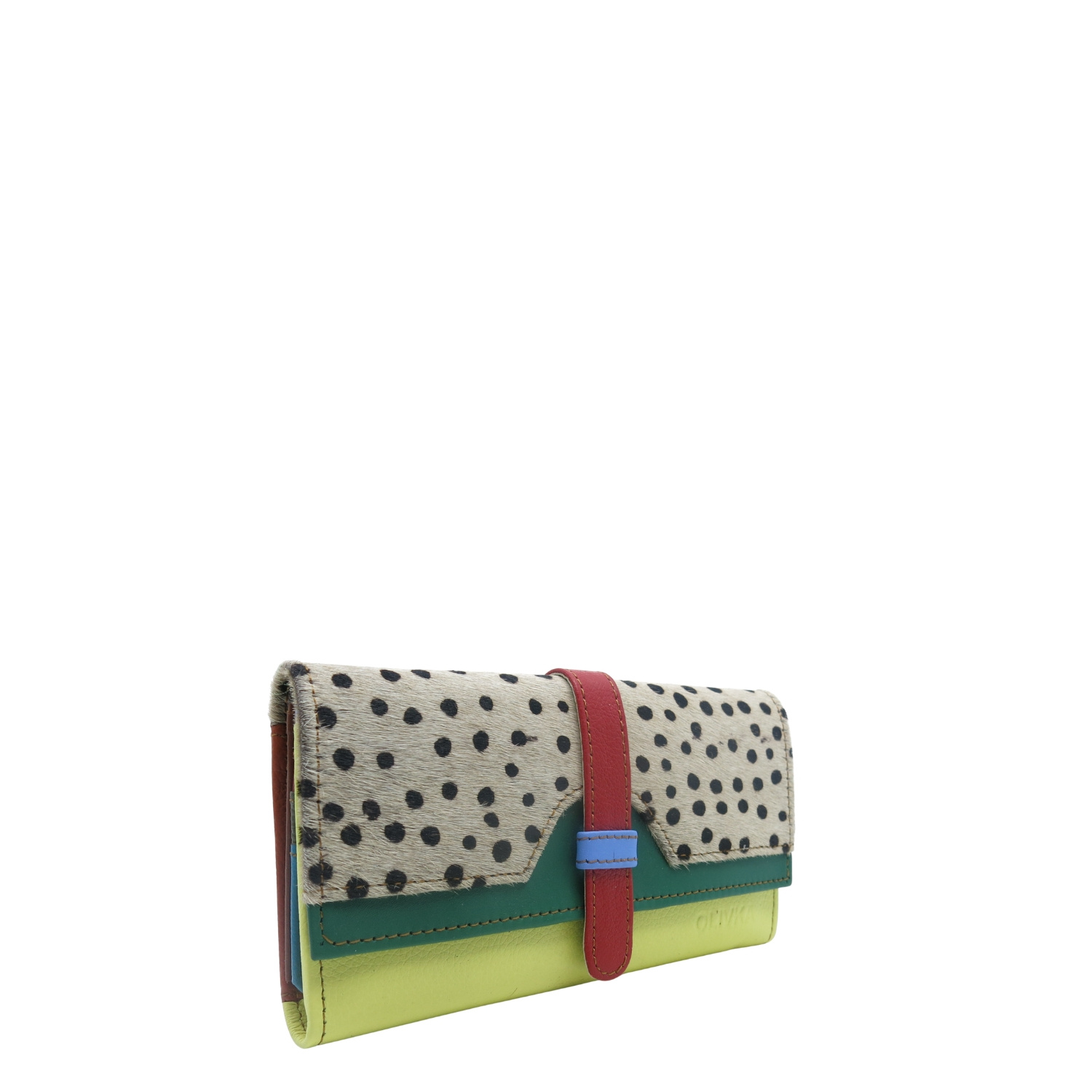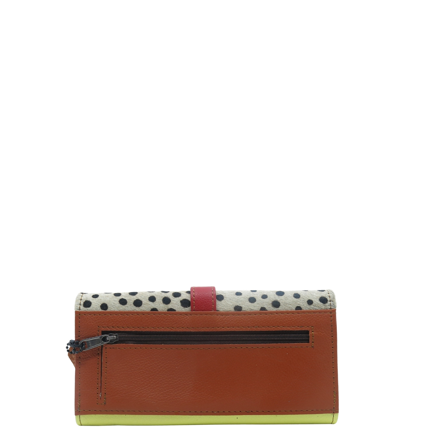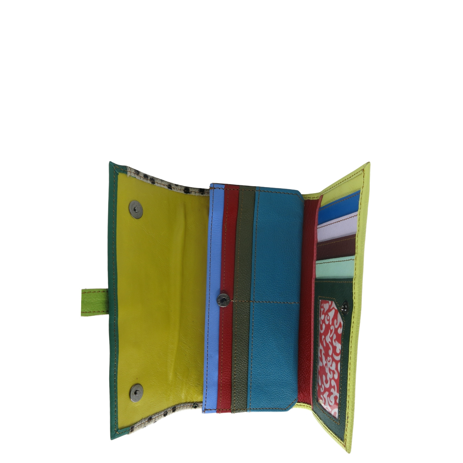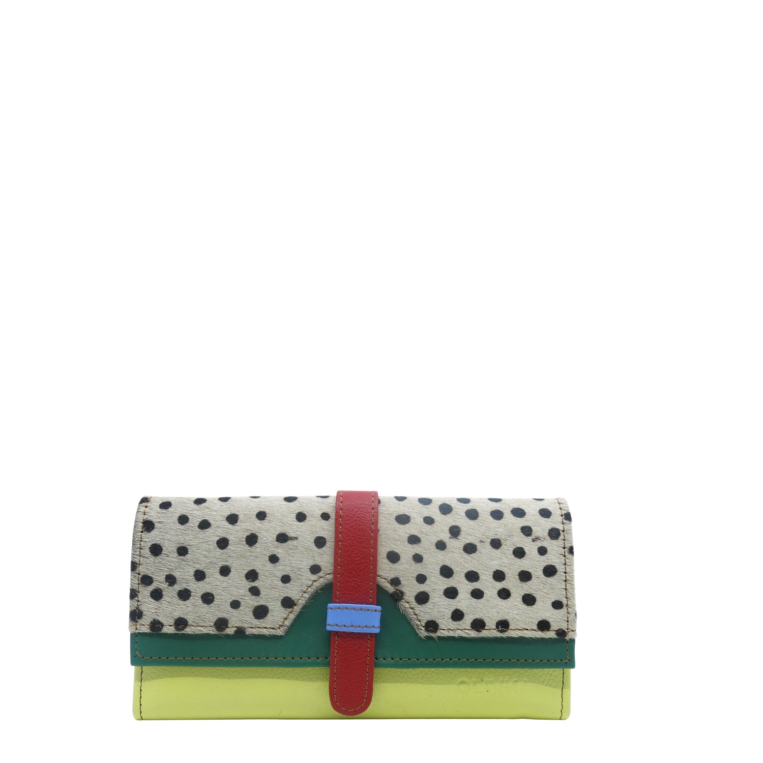 Średniej wielkości portfel wykonany ze skrawków skóry naturalnej. Jego unikalne połączenie kolorystyczne nadaje mu niepowtarzalny charakter, czyniąc go doskonałym dodatkiem. Spełni oczekiwania nawet najbardziej wymagających kobiet.