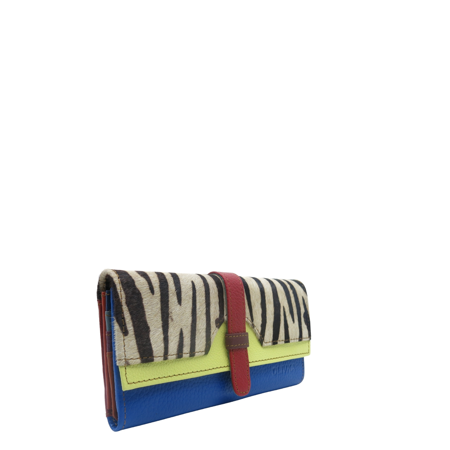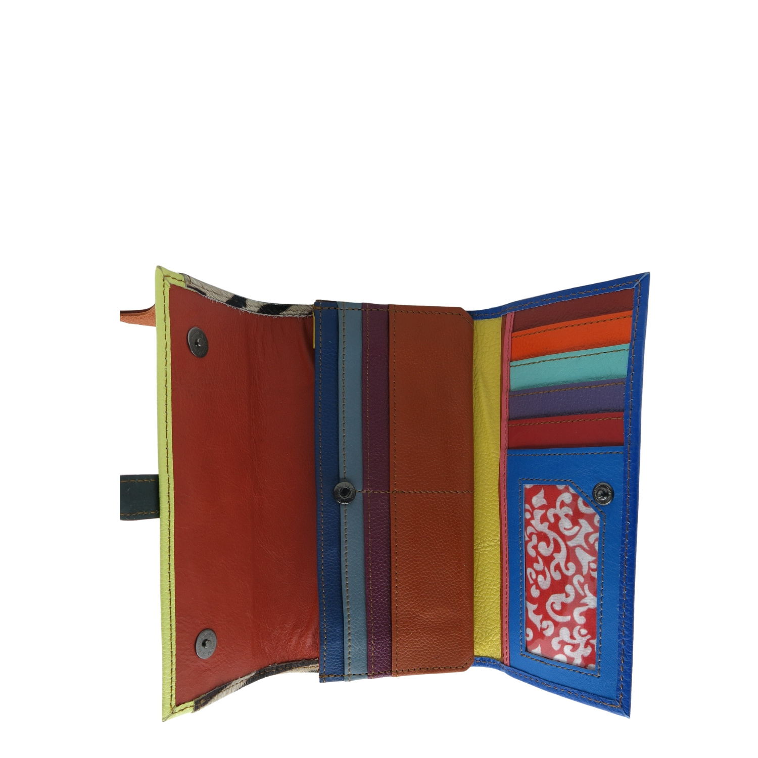 Średniej wielkości portfel wykonany ze skrawków skóry naturalnej. Jego unikalne połączenie kolorystyczne nadaje mu niepowtarzalny charakter, czyniąc go doskonałym dodatkiem. Spełni oczekiwania nawet najbardziej wymagających kobiet.