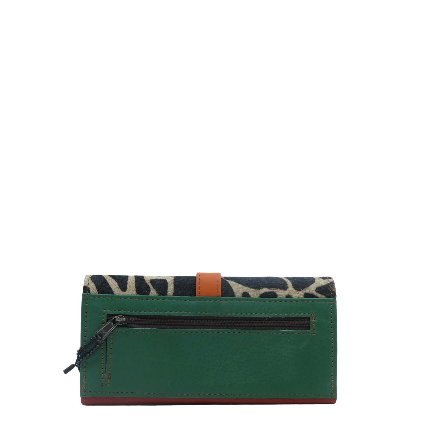 Średniej wielkości portfel wykonany ze skrawków skóry naturalnej. Jego unikalne połączenie kolorystyczne nadaje mu niepowtarzalny charakter, czyniąc go doskonałym dodatkiem. Spełni oczekiwania nawet najbardziej wymagających kobiet.