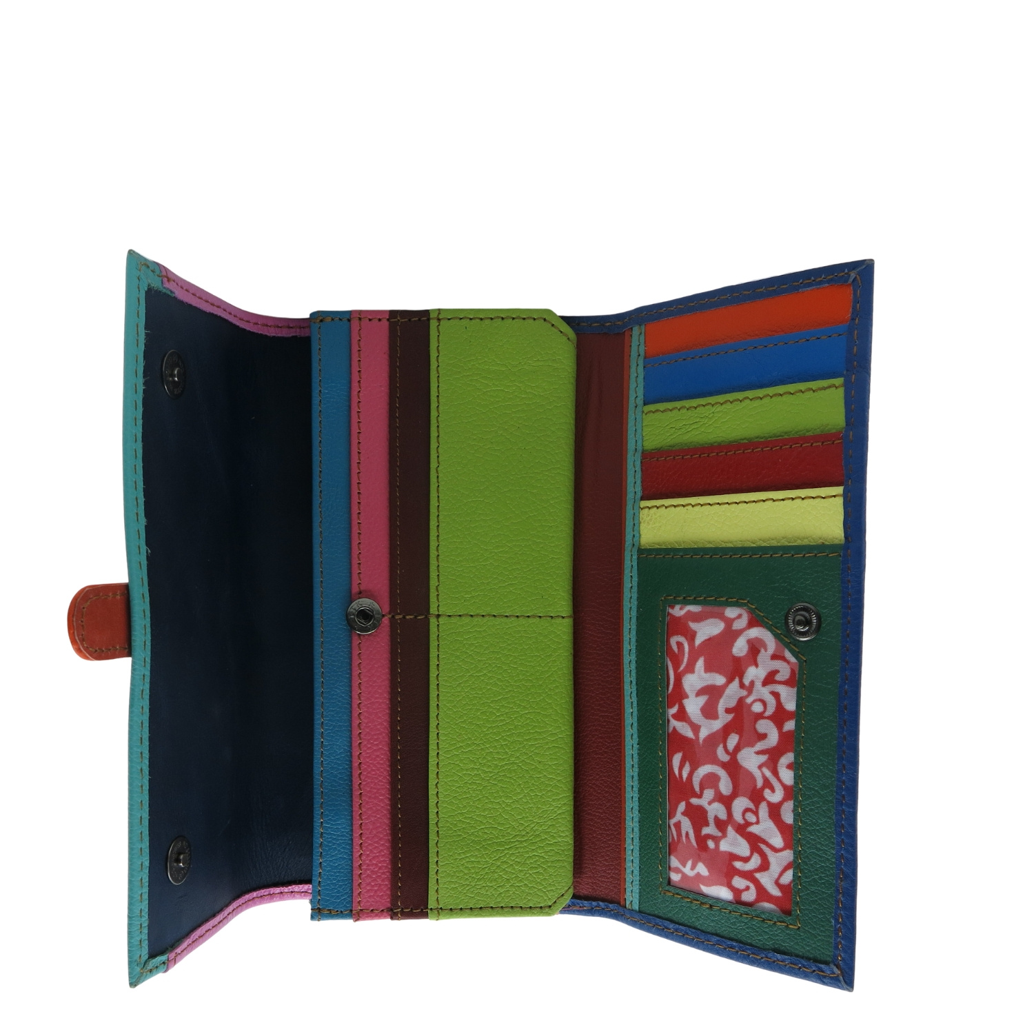 Średniej wielkości portfel wykonany ze skrawków skóry naturalnej. Jego unikalne połączenie kolorystyczne nadaje mu niepowtarzalny charakter, czyniąc go doskonałym dodatkiem. Spełni oczekiwania nawet najbardziej wymagających kobiet.
