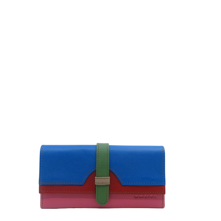 Średniej wielkości portfel wykonany ze skrawków skóry naturalnej. Jego unikalne połączenie kolorystyczne nadaje mu niepowtarzalny charakter, czyniąc go doskonałym dodatkiem. Spełni oczekiwania nawet najbardziej wymagających kobiet.