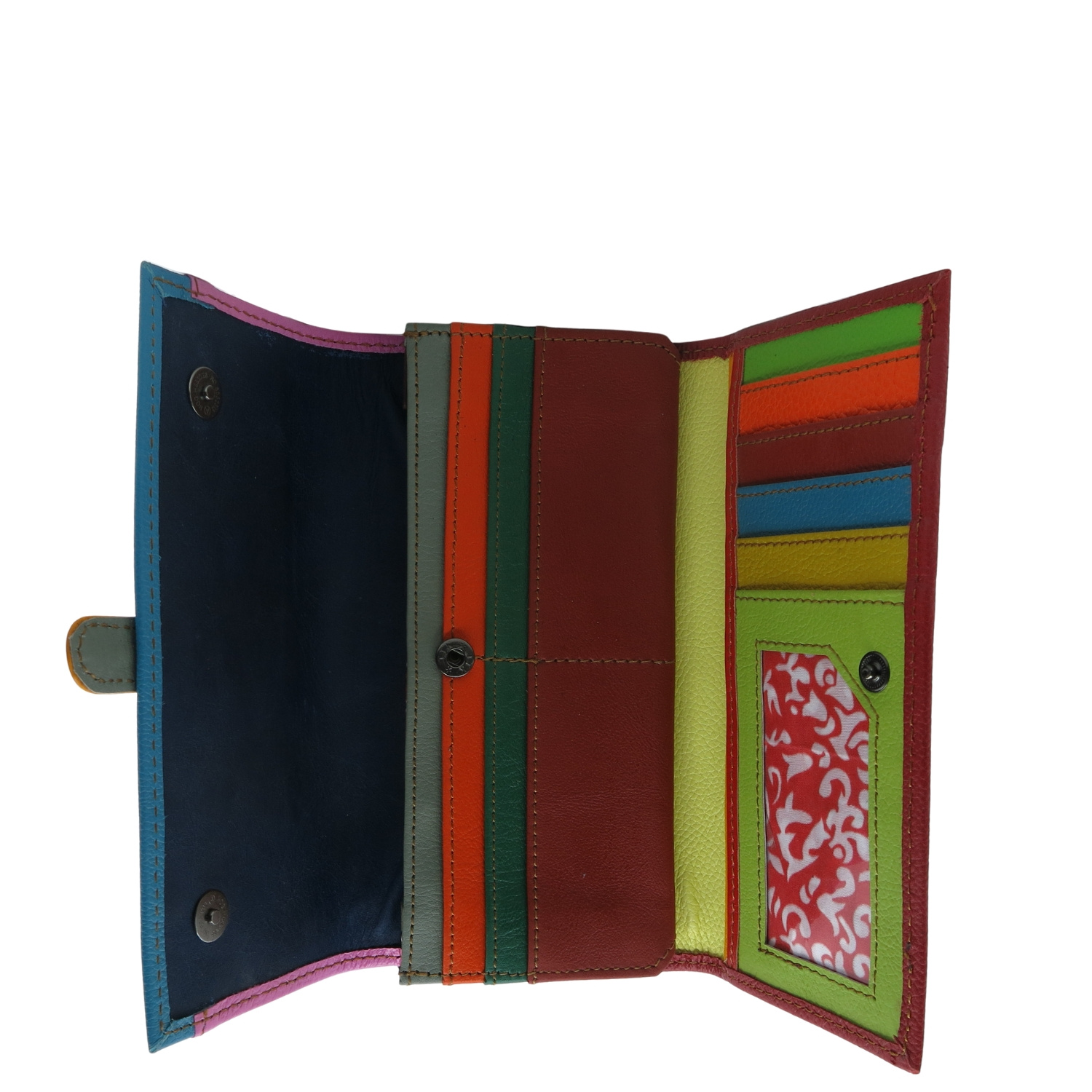 Średniej wielkości portfel wykonany ze skrawków skóry naturalnej. Jego unikalne połączenie kolorystyczne nadaje mu niepowtarzalny charakter, czyniąc go doskonałym dodatkiem. Spełni oczekiwania nawet najbardziej wymagających kobiet.