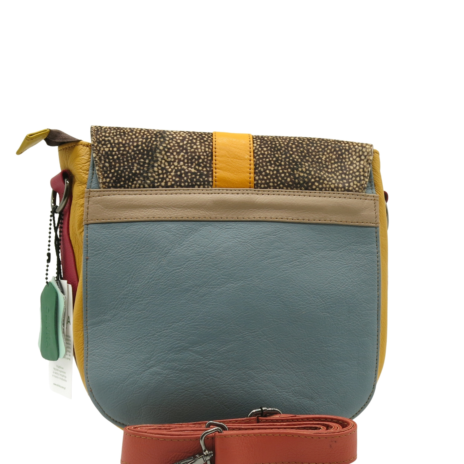 Nasza skórzana torebka to niezastąpiony dodatek w szafie każdej kobiety. Charakteryzuje się wyjątkowym połączeniem kolorystycznym, które z pewnością przyciągnie spojrzenia i wyróżni każdą stylizację. Jej główna komora, zamykana na zamek oraz klapkę z magnesem, zapewnia nie tylko bezpieczeństwo, ale także łatwy dostęp do zawartości.