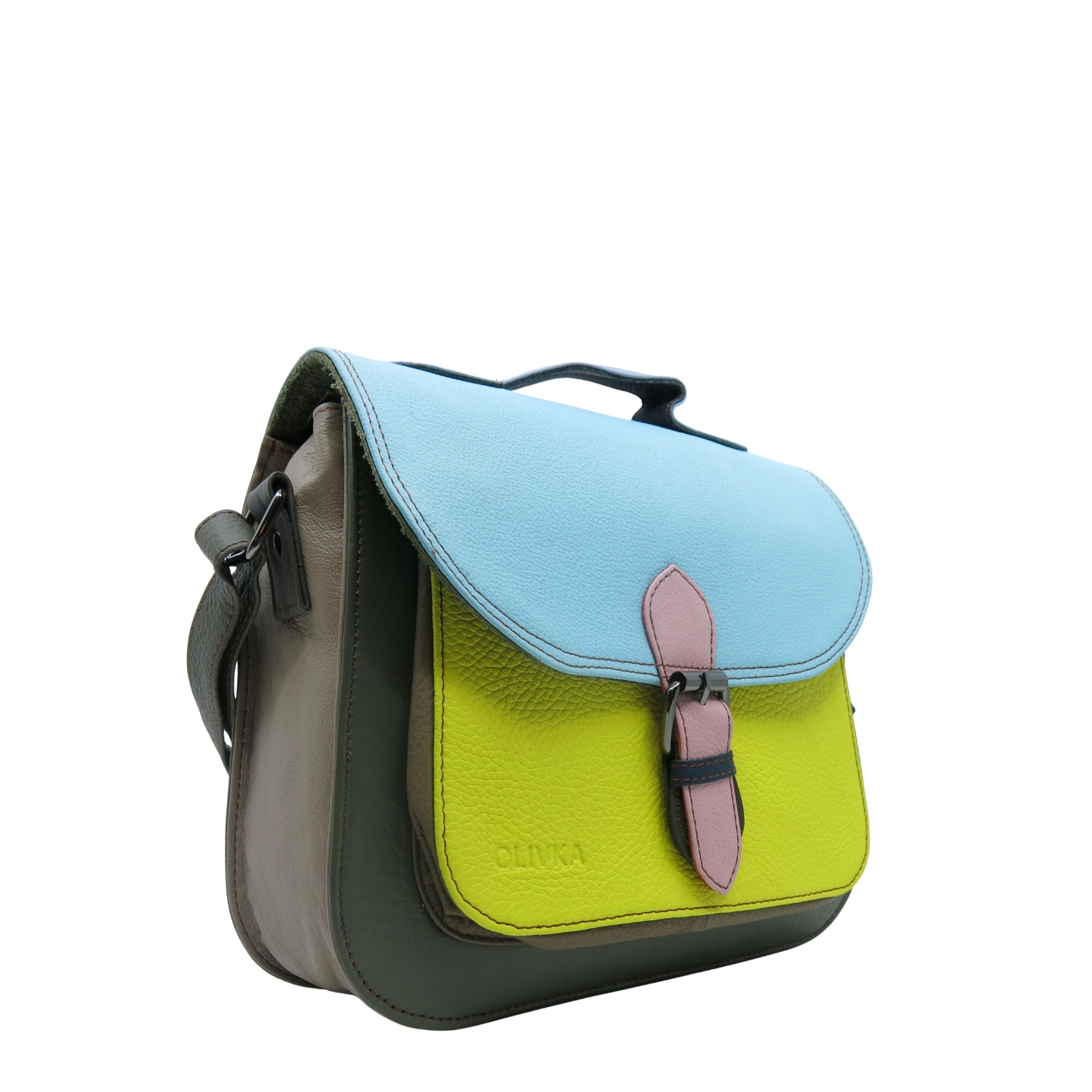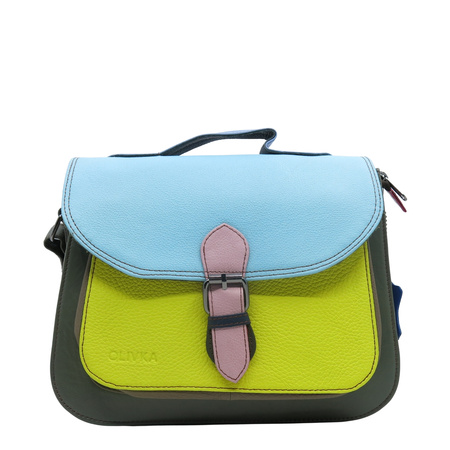 Ta wyjątkowa torebka to idealny wybór dla kobiet ceniących oryginalność i styl. Wykonana ze starannie dobranych skrawków skóry naturalnej, zachwyca niepowtarzalnym połączeniem kolorów – każda jest unikalna.