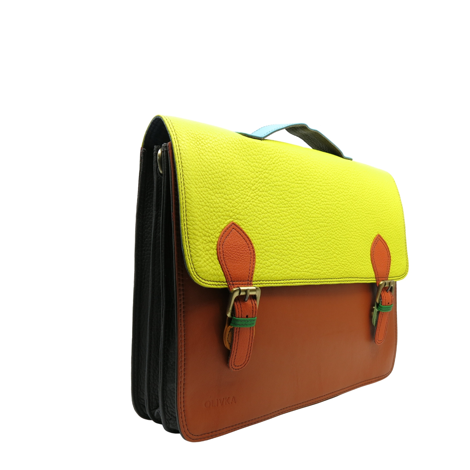 Aktówka, która jest idealnym połączeniem funkcjonalności i elegancji. Wykonana ze skrawków skóry naturalnej, o efektownym połączeniu kolorystycznym, wprowadzi nutę luksusu do Twojego stylu. Wygodna skórzana rączka oraz długi, regulowany pasek, zapewniają komfort noszenia.