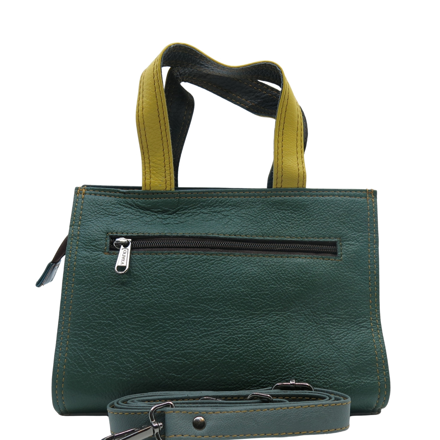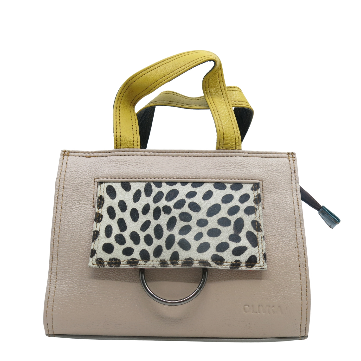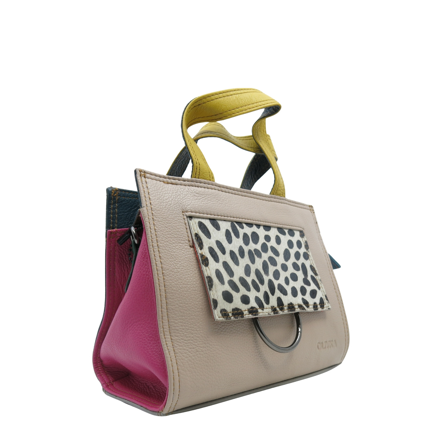 Ta unikalna torebka została uszyta ze skrawków skóry naturalnej. Każdy egzemplarz to małe dzieło sztuki - powstałe w duchu zero waste, z dbałością o środowisko i estetykę. Dzięki starannemu doborowi kolorów i faktur, torebka przyciąga spojrzenia i dodaje charakteru każdej stylizacji.