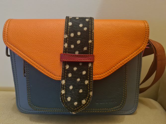 Przepiękna listonoszka wykona ze skóry naturalnej z odwracalnym paskiem. Unikalny, odwracalny pasek to prawdziwy atut – jedna strona zdobiona jest modnym wzorem, podczas gdy druga pozostaje gładka i stonowana. Takie rozwiązanie pozwala łatwo dostosować torbę do indywidualnego stylu i okazji.
