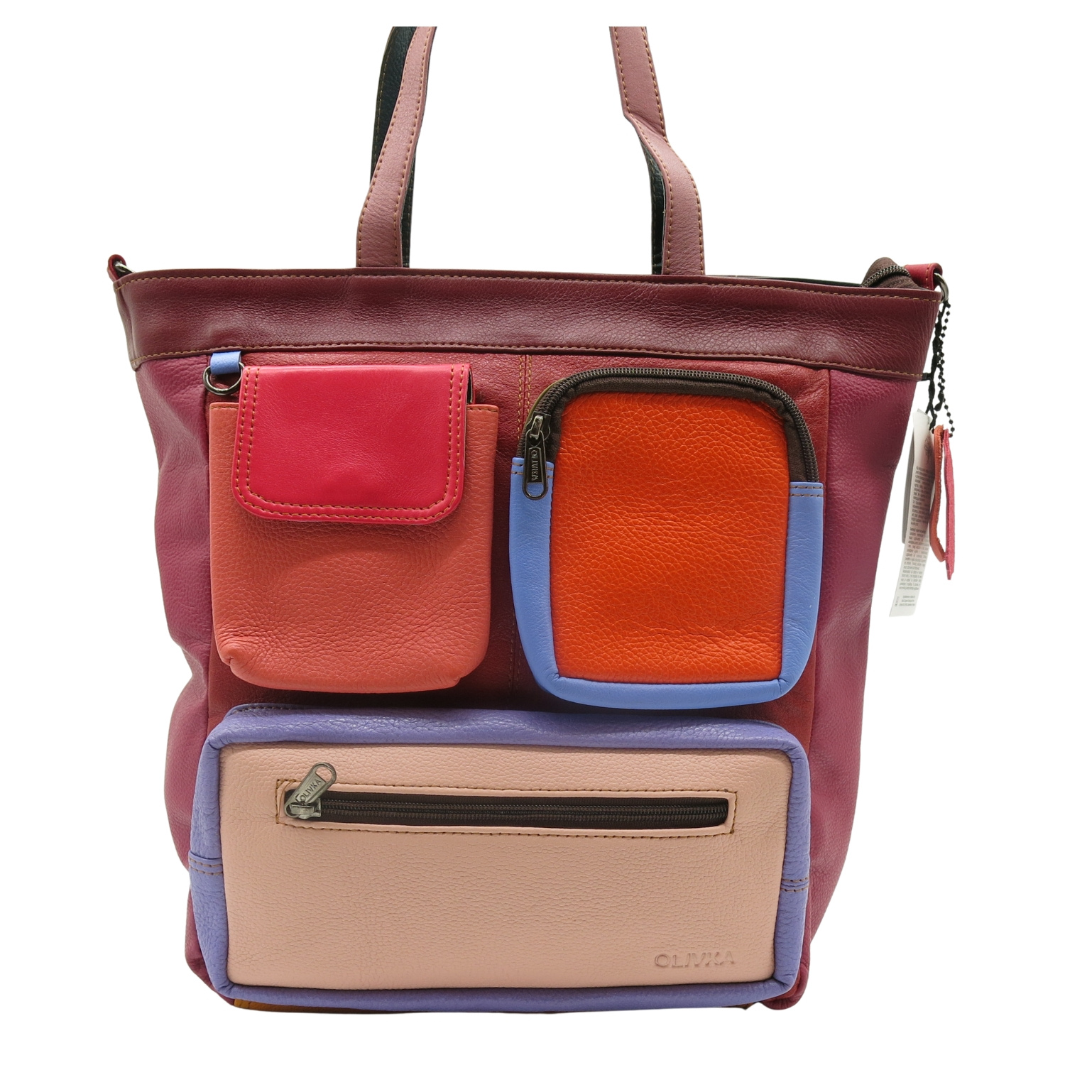 - z przodu torebki dwie kieszenie zamykane na suwak oraz jedna zamykana na klapkę z zapięcie magnetyczne