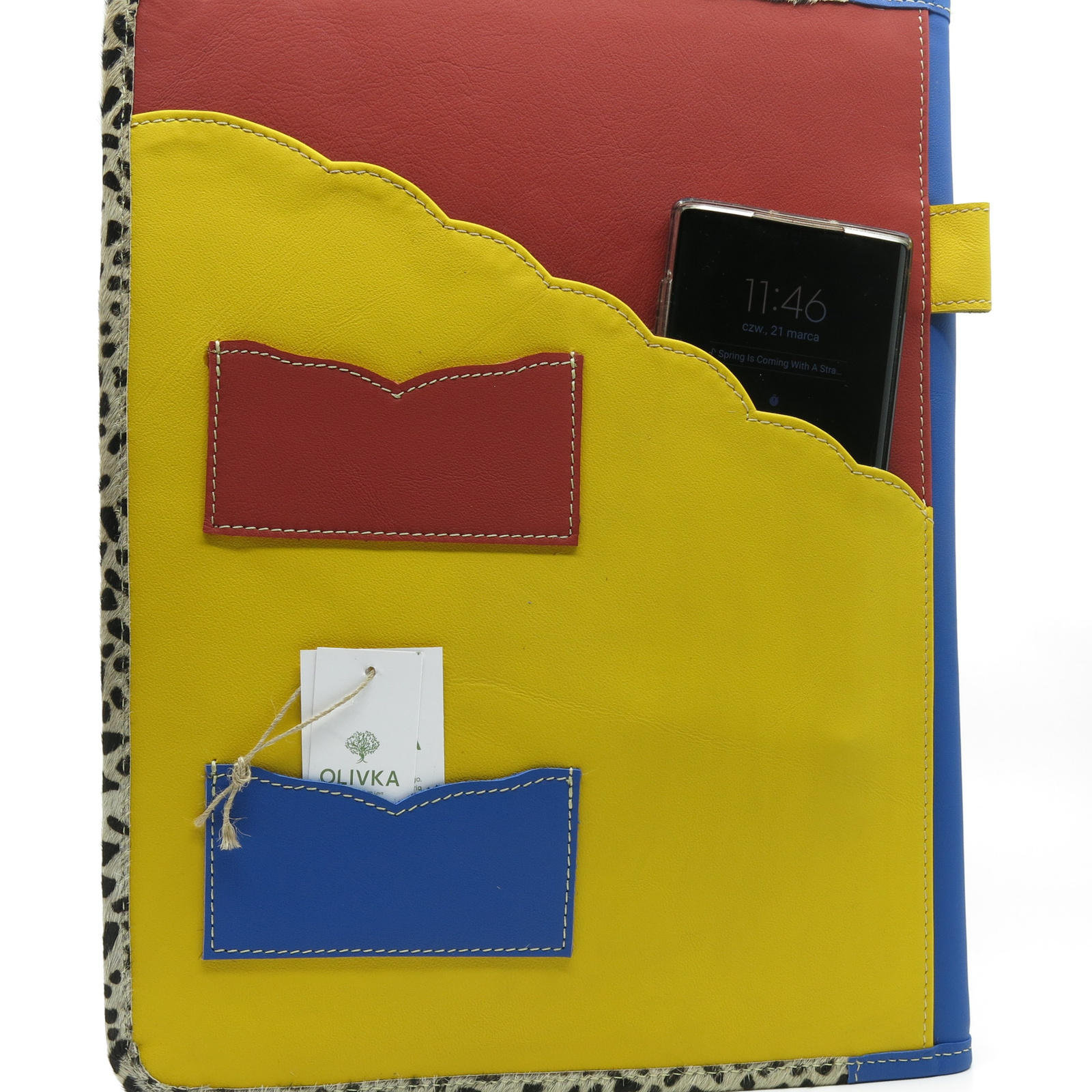 Przepiękny organizer z licznymi przegrodami. Wykonany ze skrawków skóry naturalnej, zachwyci Cię jakością i przepięknym połączeniem kolorystycznym!