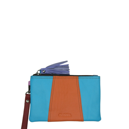 Unikatowa kosmetyczka uszyta ręcznie ze skrawków skóry naturalnej w duchu zero waste - każdy egzemplarz jest niepowtarzalny! Ozdobiona chwostem na suwaku i wyposażona w odpinany pasek na nadgarstek, który ułatwia noszenie. Idealnie sprawdzi się jako oryginalny prezent.