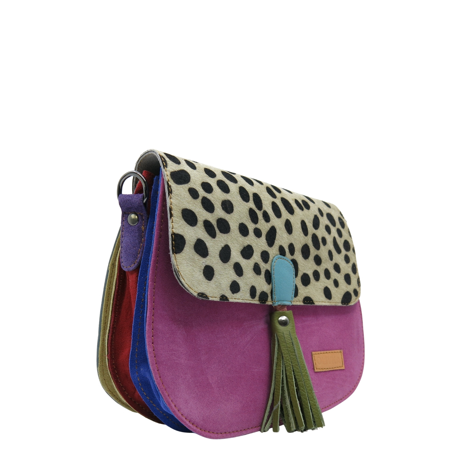 - tył torebki wykonany ze skrawków skóry naturalnej