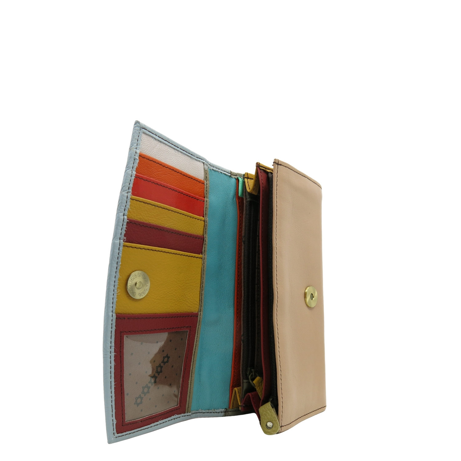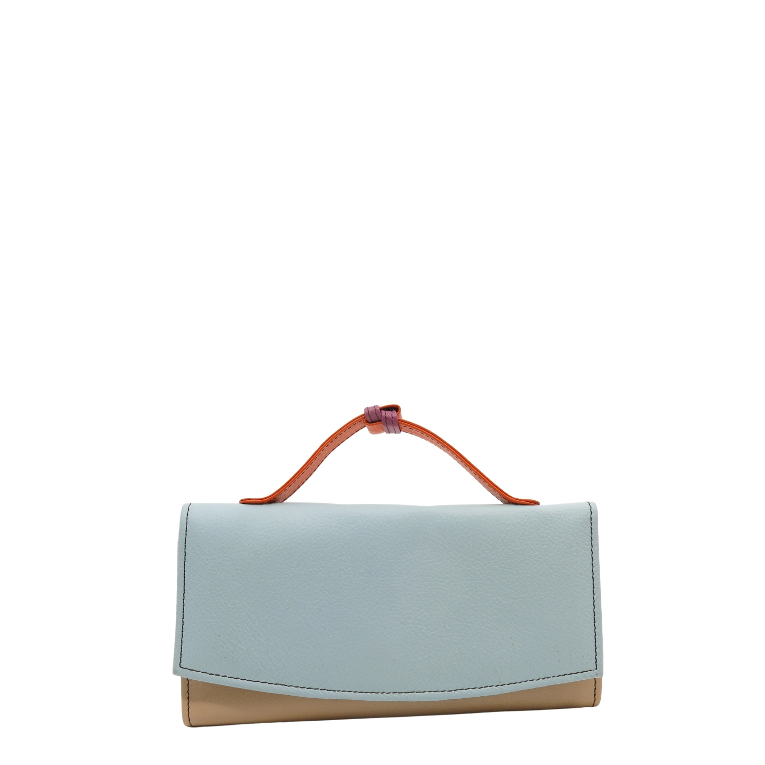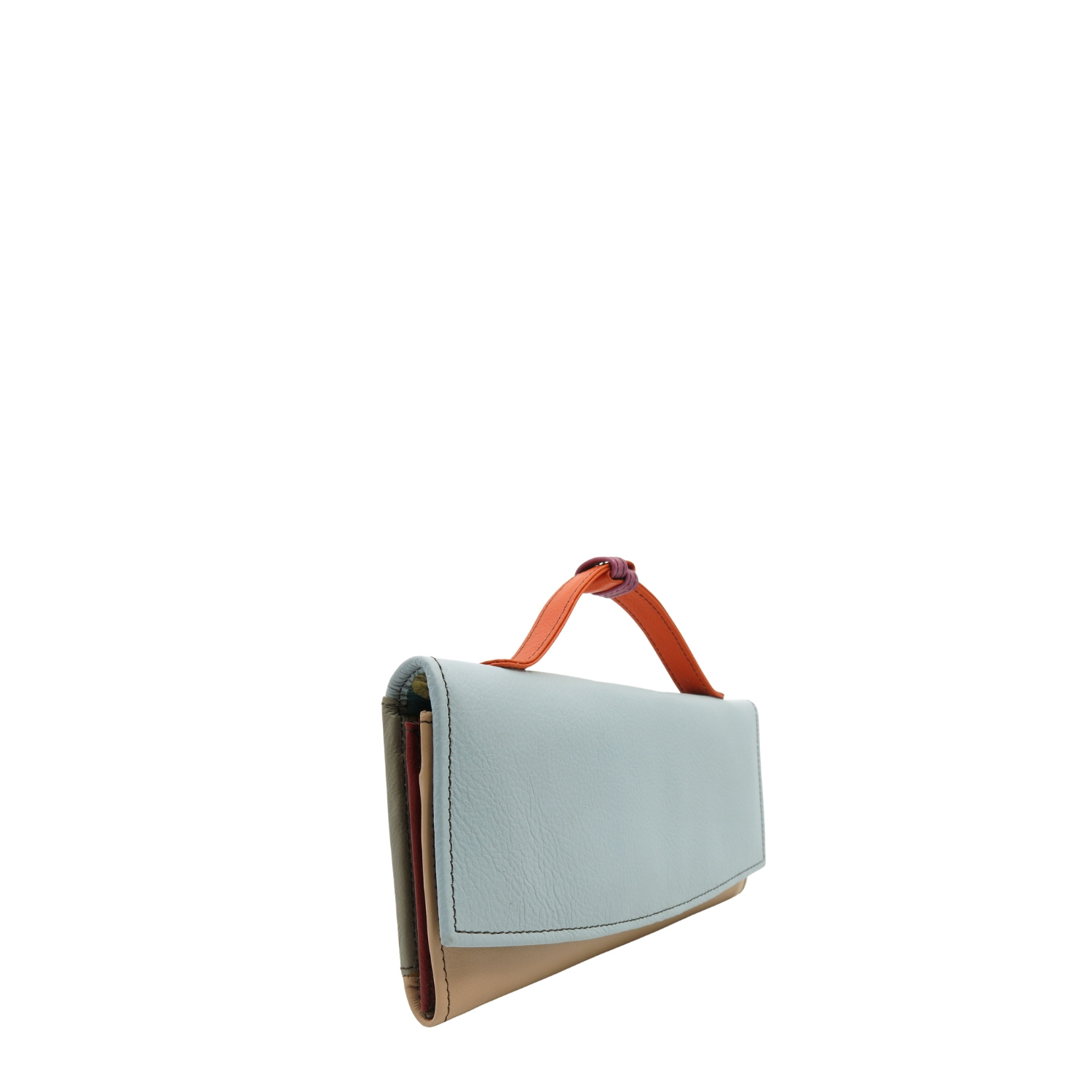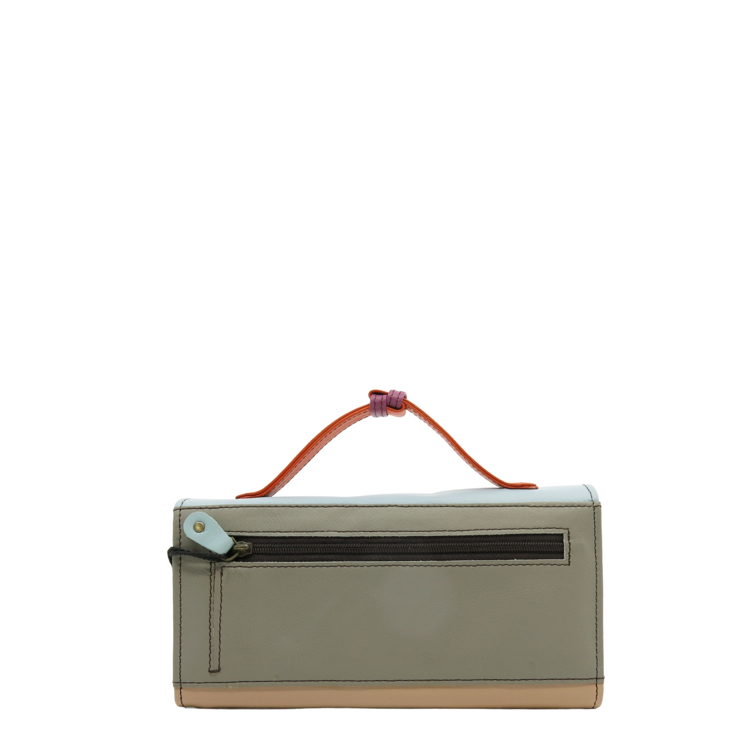 Średniej wielkości portfel wykonany ze skrawków skóry naturalnej. Jego unikalne połączenie kolorystyczne nadaje mu niepowtarzalny charakter, czyniąc go doskonałym dodatkiem. Spełni oczekiwania nawet najbardziej wymagających kobiet, a dzięki regulowanej rączce można go nosić jak kopertówkę!