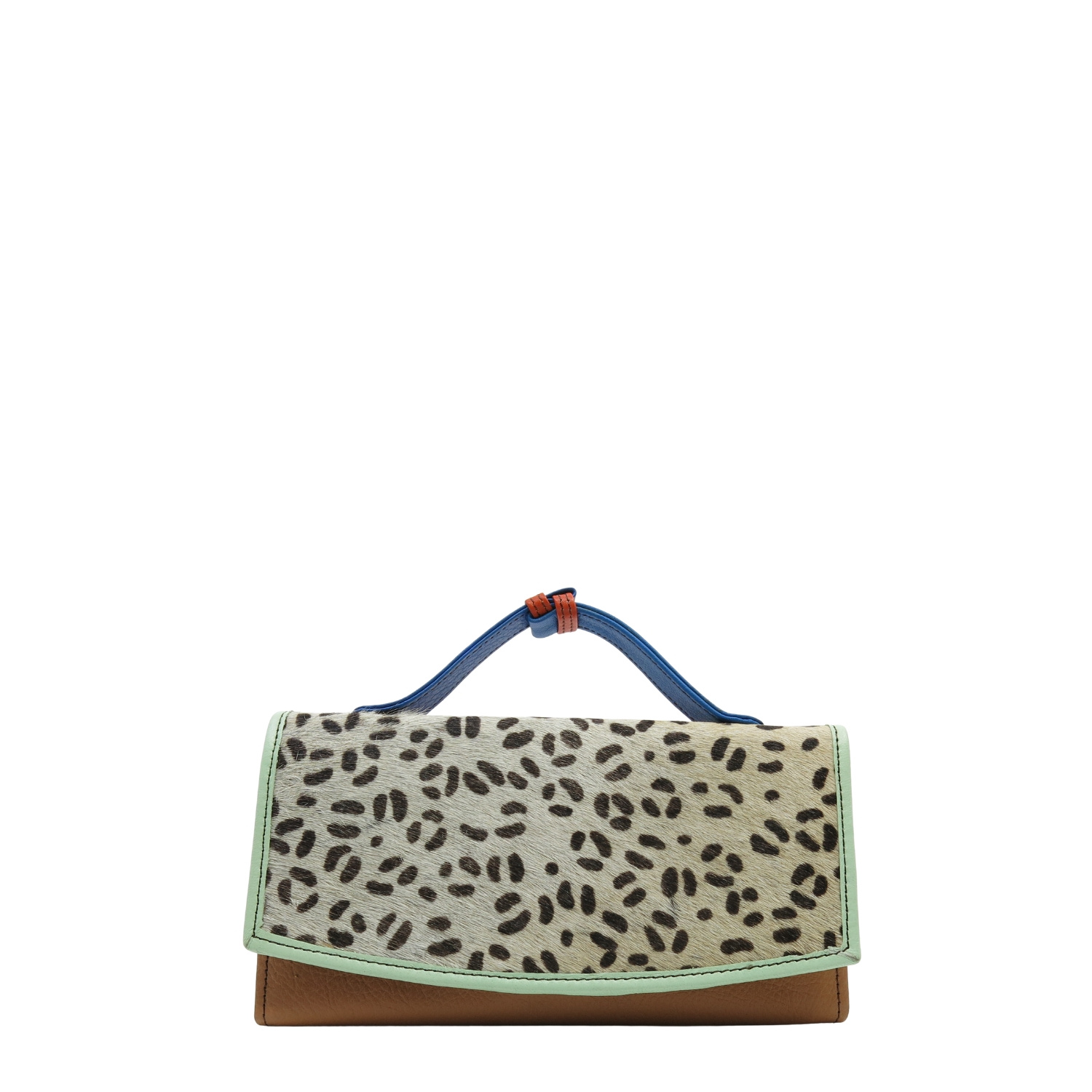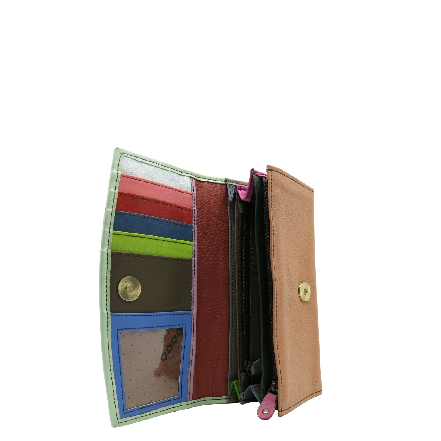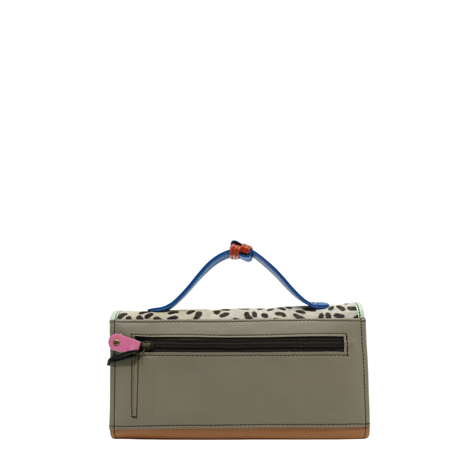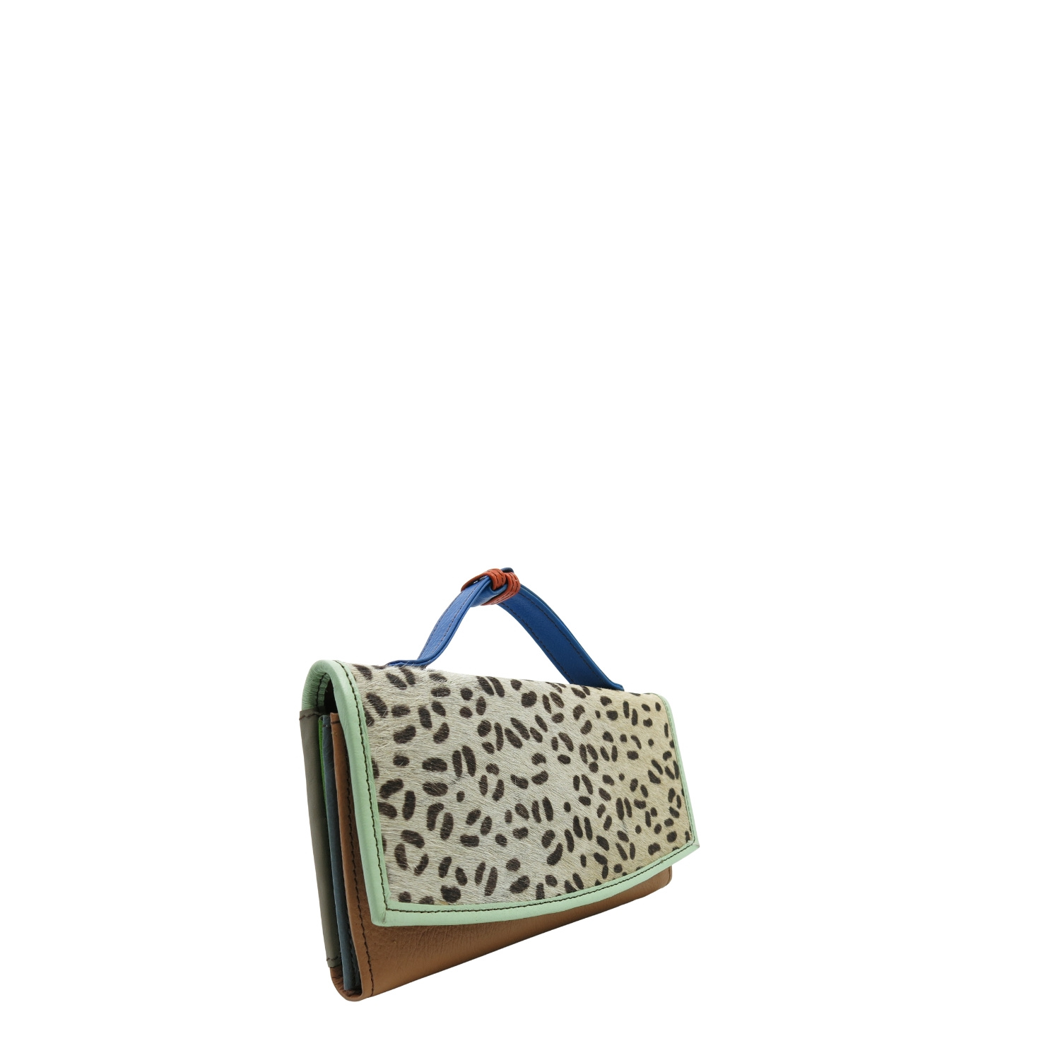 Średniej wielkości portfel wykonany ze skrawków skóry naturalnej. Jego unikalne połączenie kolorystyczne nadaje mu niepowtarzalny charakter, czyniąc go doskonałym dodatkiem. Spełni oczekiwania nawet najbardziej wymagających kobiet, a dzięki regulowanej rączce można go nosić jak kopertówkę!