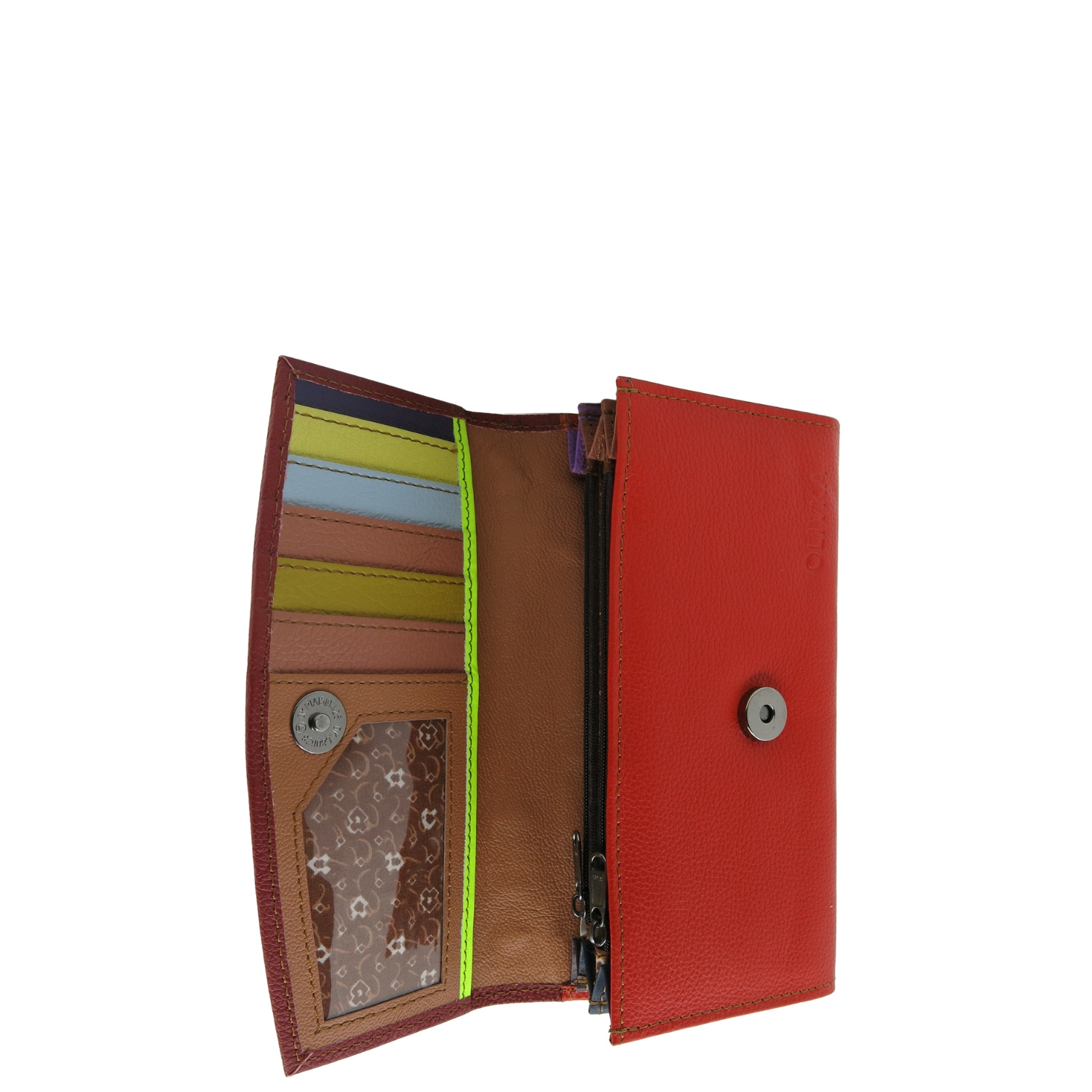 Średniej wielkości portfel wykonany ze skrawków skóry naturalnej. Jego unikalne połączenie kolorystyczne nadaje mu niepowtarzalny charakter, czyniąc go doskonałym dodatkiem. Spełni oczekiwania nawet najbardziej wymagających kobiet, a dzięki regulowanej rączce można go nosić jak kopertówkę!