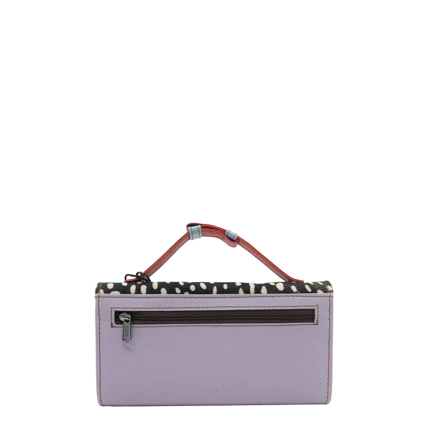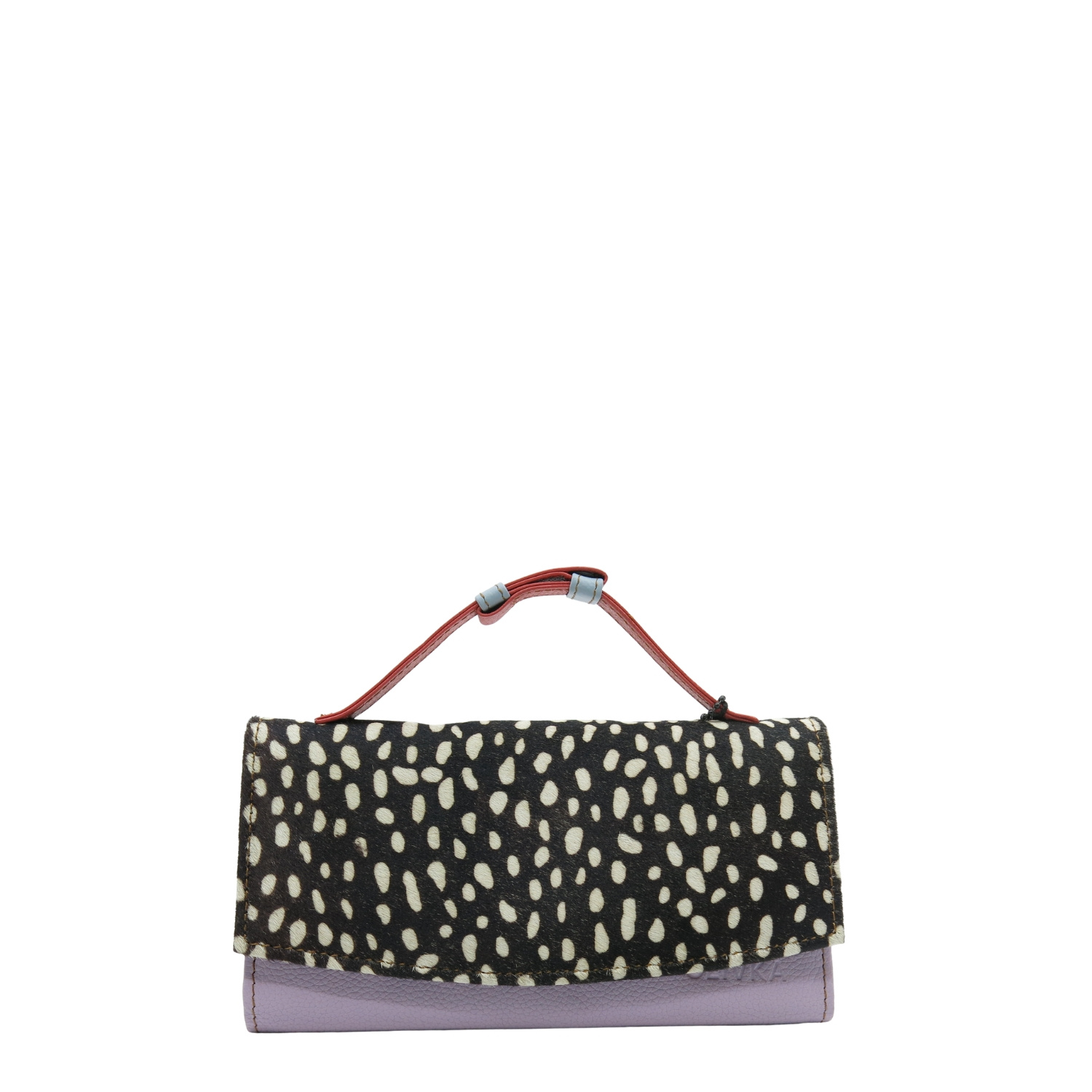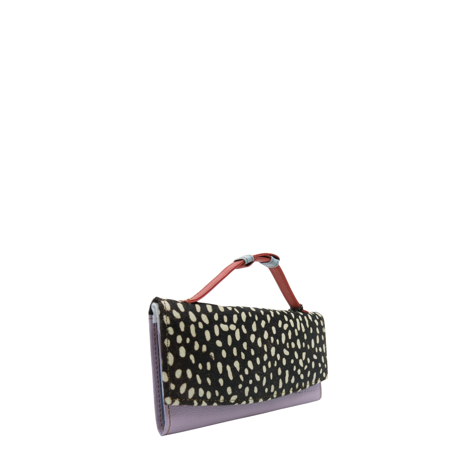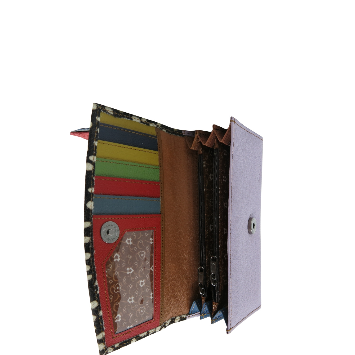 Średniej wielkości portfel wykonany ze skrawków skóry naturalnej. Jego unikalne połączenie kolorystyczne nadaje mu niepowtarzalny charakter, czyniąc go doskonałym dodatkiem. Spełni oczekiwania nawet najbardziej wymagających kobiet, a dzięki regulowanej rączce można go nosić jak kopertówkę!