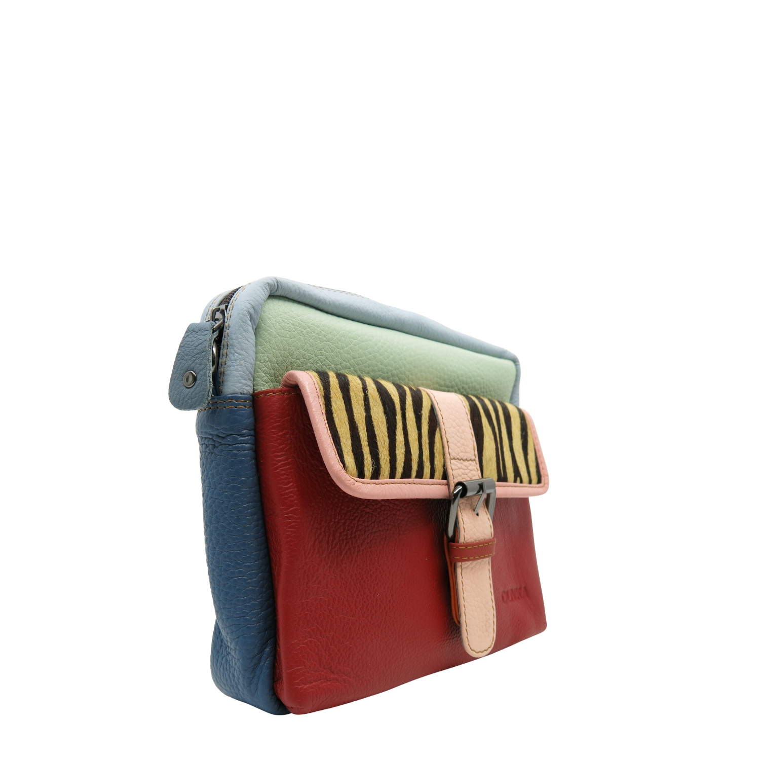 Szukasz torebki, która wyróżni Cię z tłumu? Ta kolorowa listonoszka to prawdziwy unikat - wykonana ręcznie ze skrawków naturalnej skóry, dzięki czemu nie ma dwóch takich samych egzemplarzy. Każda torebka to inna gra barw i faktur, która nada Twojej stylizacji charakteru.