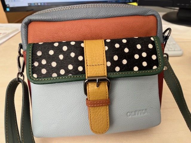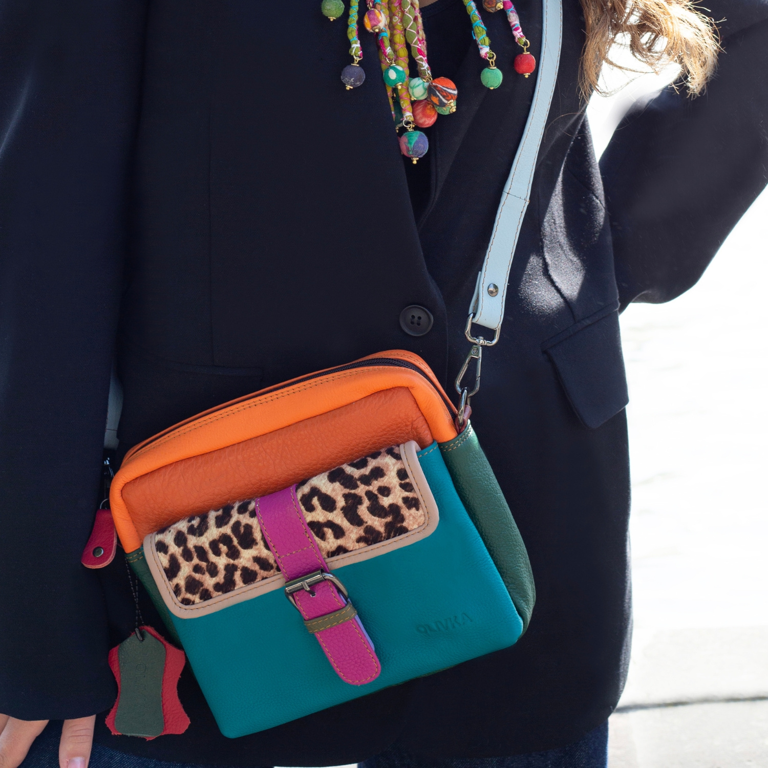 Szukasz torebki, która wyróżni Cię z tłumu? Ta kolorowa listonoszka to prawdziwy unikat - wykonana ręcznie ze skrawków naturalnej skóry, dzięki czemu nie ma dwóch takich samych egzemplarzy. Każda torebka to inna gra barw i faktur, która nada Twojej stylizacji charakteru.
