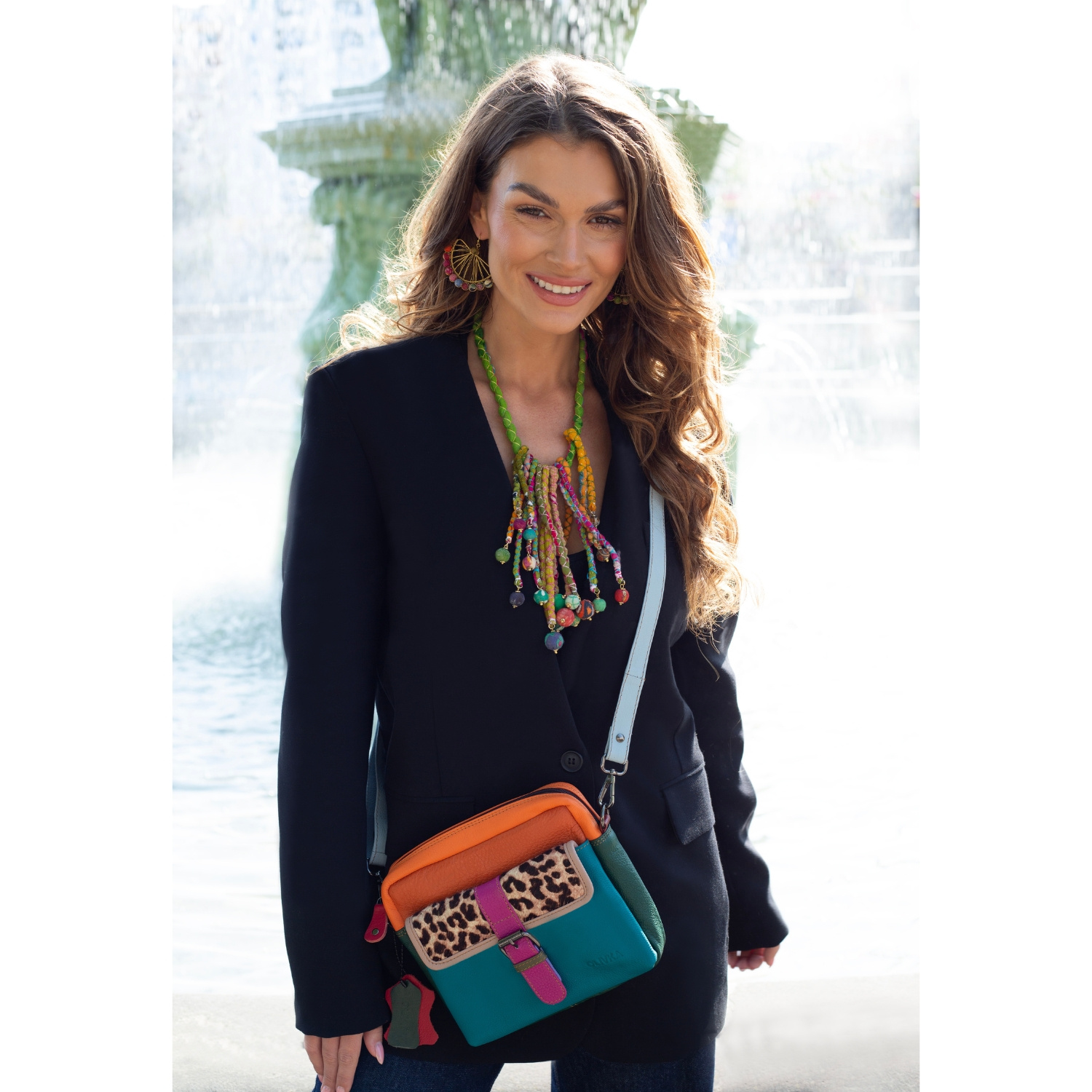 Szukasz torebki, która wyróżni Cię z tłumu? Ta kolorowa listonoszka to prawdziwy unikat - wykonana ręcznie ze skrawków naturalnej skóry, dzięki czemu nie ma dwóch takich samych egzemplarzy. Każda torebka to inna gra barw i faktur, która nada Twojej stylizacji charakteru.