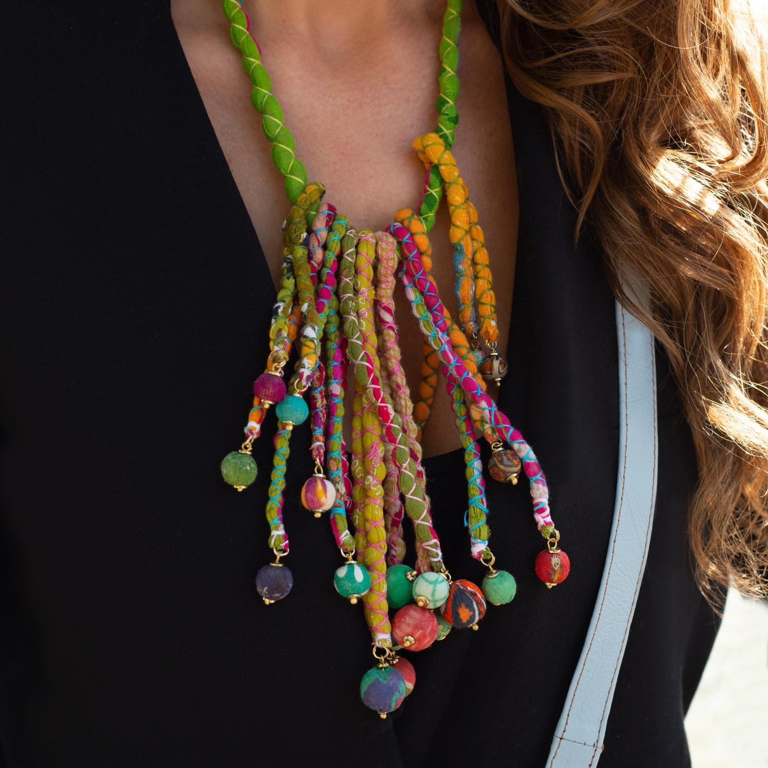 Biżuteria którą widzisz to nie tylko piękny dodatek. Każda sztuka została ręcznie wykonana z bawełny z recyklingu – pozyskanej z tradycyjnych hinduskich sari. Jest przyjazna środowisku – wykorzystuje odpady tekstylne i zmniejsza zużycie surowców. Unikatowa jak kobiety - rzemieślniczki, które ją dla Ciebie stworzyły bo każda sztuka jest niepowtarzalna. Zrównoważona moda to nie tylko trend, lecz konieczność dla dobra planety - świadome wybory wspierają pozytywne zmiany w branży modowej i chronią środowisko. Twój zakup ma znaczenie. Wzmacnia finansowo pozycję kobiet, wspiera ich rodziny i daje nadzieję na trwałą zmianę.