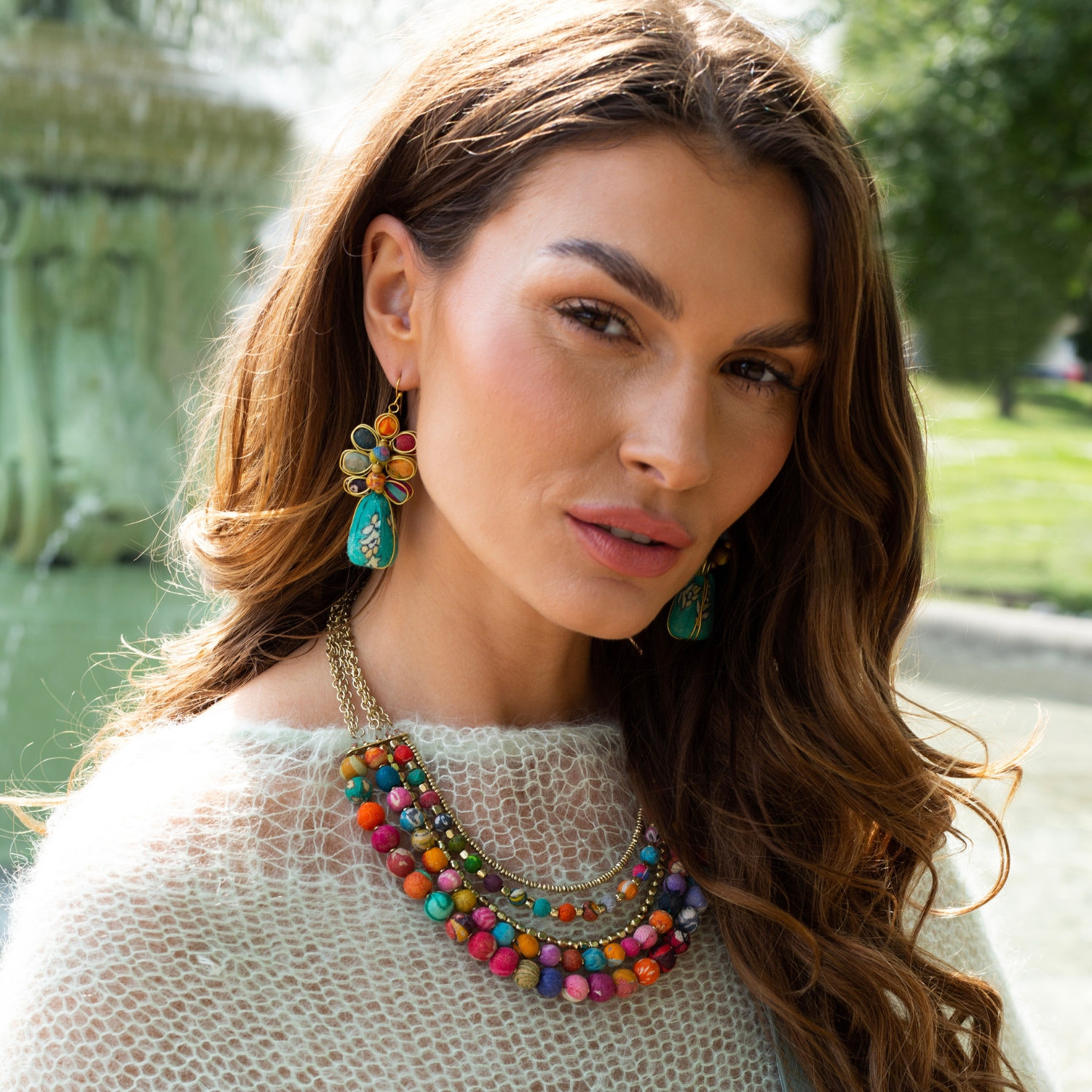 Biżuteria którą widzisz to nie tylko piękny dodatek. Każda sztuka została ręcznie wykonana z bawełny z recyklingu – pozyskanej z tradycyjnych hinduskich sari. Jest przyjazna środowisku – wykorzystuje odpady tekstylne i zmniejsza zużycie surowców. Unikatowa jak kobiety - rzemieślniczki, które ją dla Ciebie stworzyły bo każda sztuka jest niepowtarzalna. Zrównoważona moda to nie tylko trend, lecz konieczność dla dobra planety - świadome wybory wspierają pozytywne zmiany w branży modowej i chronią środowisko. Twój zakup ma znaczenie. Wzmacnia finansowo pozycję kobiet, wspiera ich rodziny i daje nadzieję na trwałą zmianę.