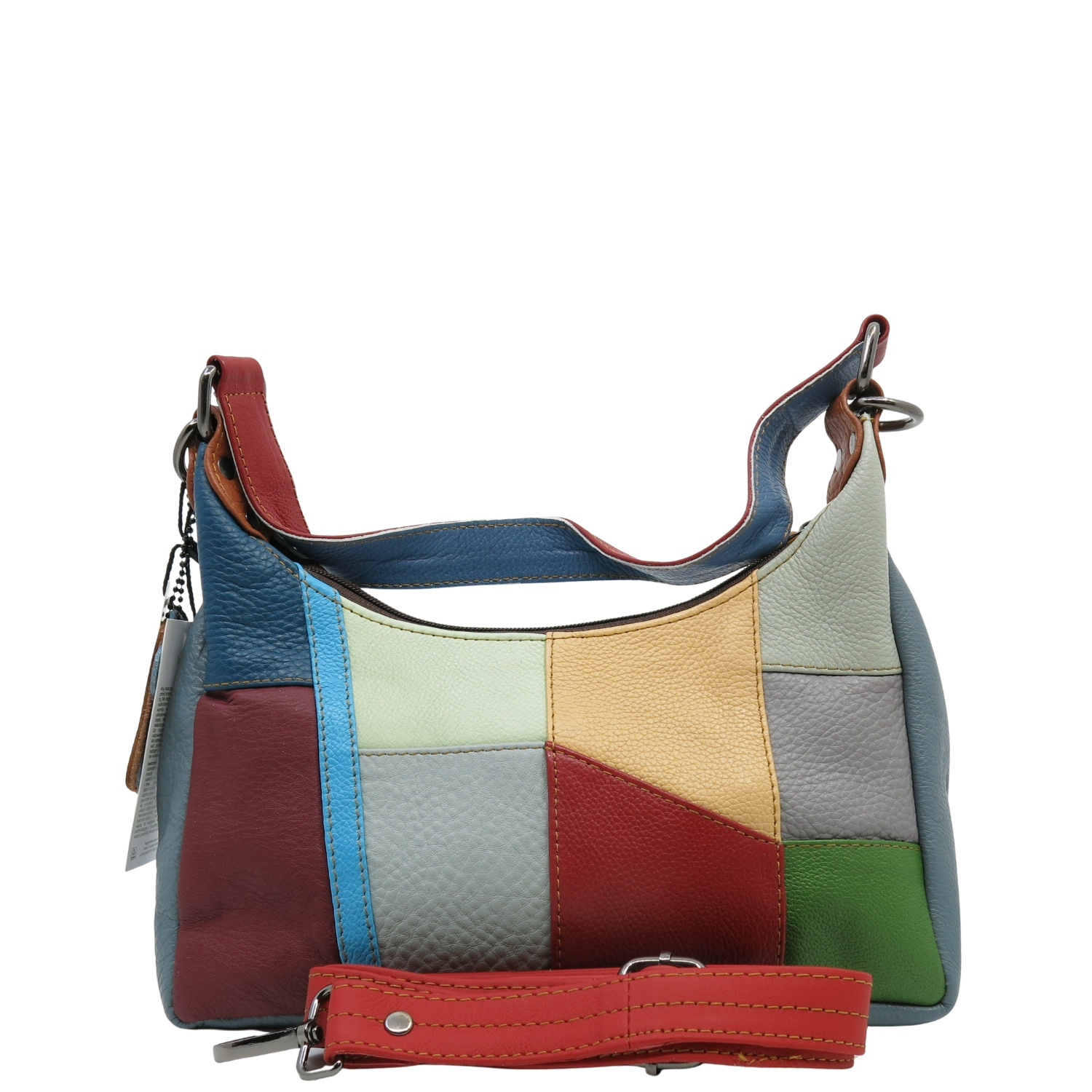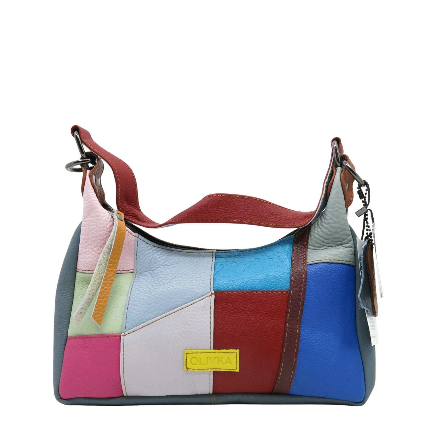 Ta unikalna torebka została uszyta ze starannie dobranych skrawków skóry naturalnej, którym nadaliśmy drugie życie. To, co dla innych mogło być bezużyteczne, u nas staje się pięknym i funkcjonalnym dodatkiem. Każda sztuka jest niepowtarzalna - różnorodne kolory i faktury skóry tworzą wyjątkową mozaikę, która przyciąga wzrok i podkreśla indywidualny styl.