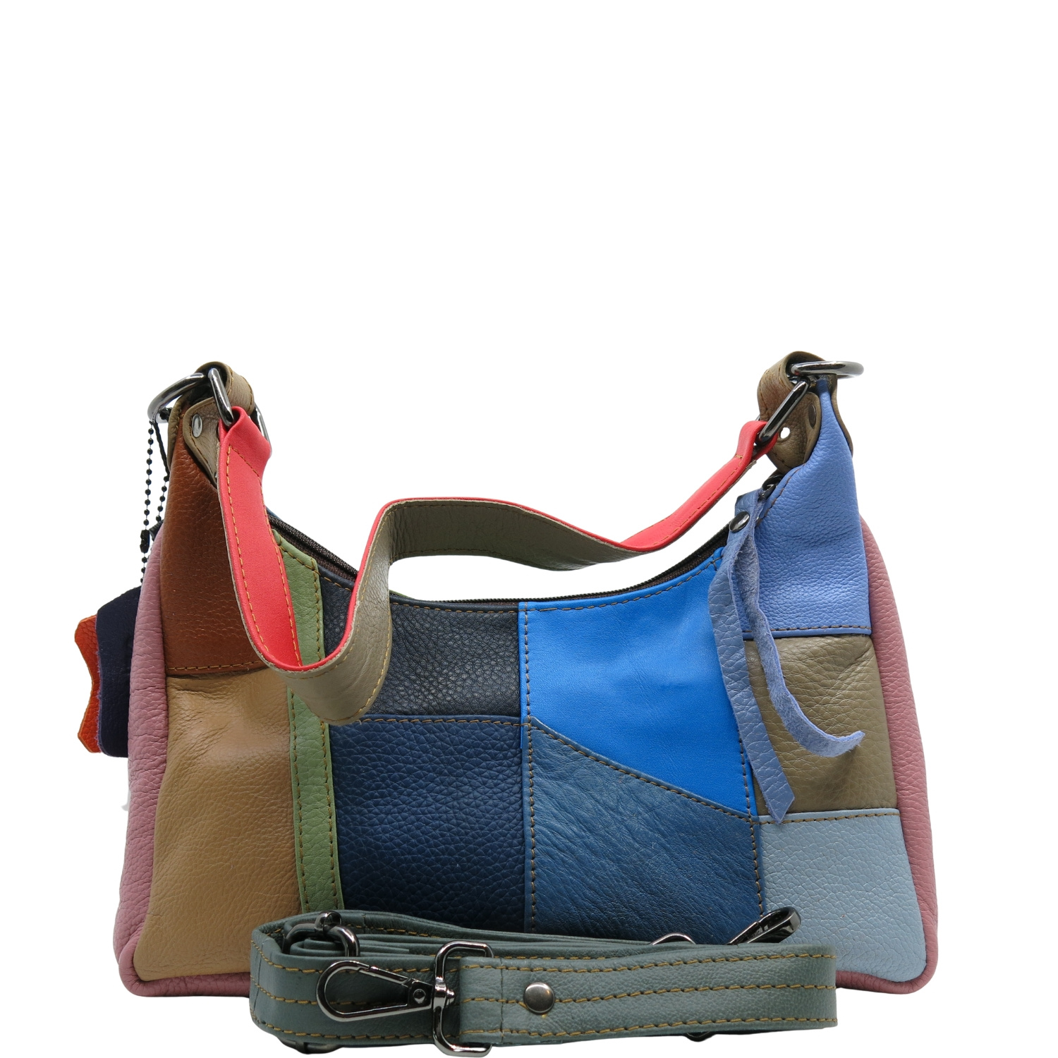 Ta unikalna torebka została uszyta ze starannie dobranych skrawków skóry naturalnej, którym nadaliśmy drugie życie. To, co dla innych mogło być bezużyteczne, u nas staje się pięknym i funkcjonalnym dodatkiem. Każda sztuka jest niepowtarzalna - różnorodne kolory i faktury skóry tworzą wyjątkową mozaikę, która przyciąga wzrok i podkreśla indywidualny styl.