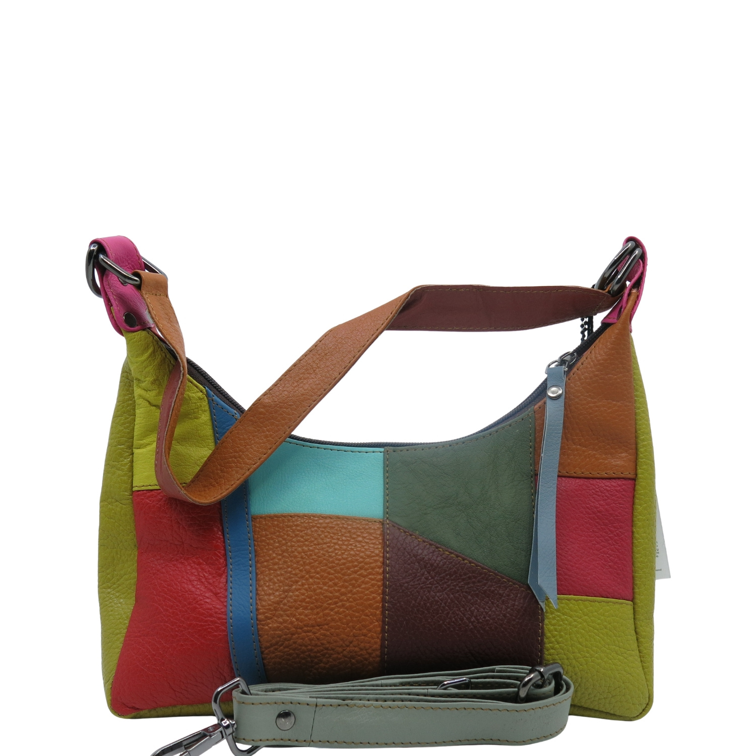 Ta unikalna torebka została uszyta ze starannie dobranych skrawków skóry naturalnej, którym nadaliśmy drugie życie. To, co dla innych mogło być bezużyteczne, u nas staje się pięknym i funkcjonalnym dodatkiem. Każda sztuka jest niepowtarzalna - różnorodne kolory i faktury skóry tworzą wyjątkową mozaikę, która przyciąga wzrok i podkreśla indywidualny styl.
